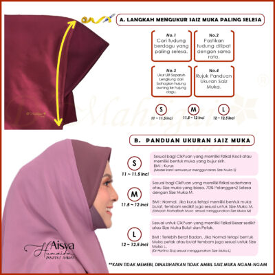 Memiliki pilihan saiz muka S, M, L untuk CikPuan yang bermuka kecil, sederhana atau besar.
